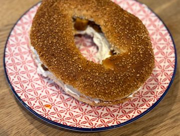 Croissant baked with zaatar and olive oil, and halloumi cheese.